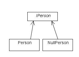 public interface IPerson { string Firstname { get; set;} string Lastname { get; set; } void DoSomething(); int CalculateSalary(); } public class NullPerson: IPerson { public string Firstname { get; set; } public string Lastname { get; set; } public void DoSomething() { } public int CalculateSalary() { return 0; } } |